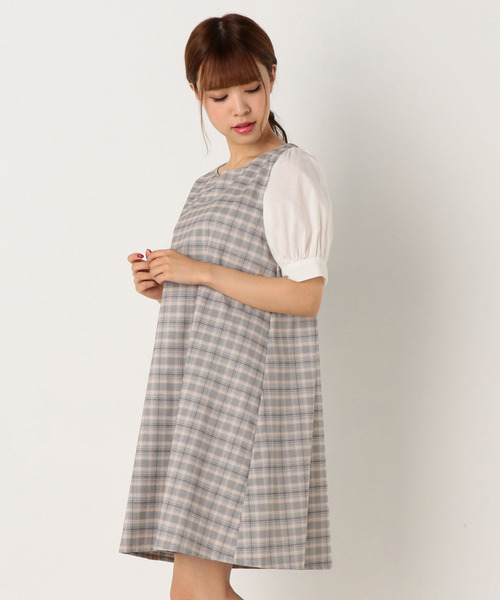 ■定番のAラインワンピースにチェックが登場■ ウエストに締め付けのないゆったりとしたシルエットが特徴。 袖部分は綿素材なので全体的に透けにくく1枚でさらっと着ていただけます。 サンダルで合わせるのが涼しげでオススメですが、ソックスにボリューム感のあるローファーでトラッドっぽく着るのも可愛いです♪