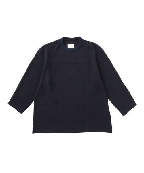 無駄な装飾を省いたベーシックなデザインのクルーネックフットボールシャツ。生地は表面カルゼと裏面サテンの二重織り。特殊加工でプルプルとした反発性とドレープ感を出し表面感や風合いに特徴がある素材です。全体的にゆったりとしたサイズ感で生地の特徴を活かし、ルーズになり過ぎないシルエットでエレガントに仕上げています。着回し力の高い一着。<UNITED ARROWS & SONS by DAISUKE OBANA>N.Hoolywoodのデザイナー尾花大輔氏とのコラボレーションコレクション。"素材に徹底的に向き合って作り上げた、一週間に3,4回着てほしい服。"をテーマに、日本を代表するファブリックメーカー「小松マテーレ(株)」の生地を使用したコレクションです。店舗へお問い合わせの際は、全国のUNITED ARROWS 各店舗まで下記の品名/品番をお申し付け下さい。品名:SONS D.O TWL FOOTBALL 品番:5512-299-0232