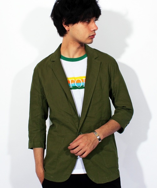 ■ストリート系 におすすめ。『 7分袖 テーラードジャケット 綿 麻 ブレザー 』 フォーマルからカジュアルまで対応の 綿麻 7分袖 テーラードジャケット が登場。春 夏 のちょっとした羽織りに是非取り入れたい サマージャケット です。清涼感のある 麻 綿 の混合素材ならではの通気性と肌触りの良さ、両方を兼ね備えたています。 ■これからの暑い季節に重宝するジャケットに仕上がっております。 全体的にタイトなシルエットでコーディネートを一気に品格ある大人の雰囲気にしてくれます。ベーシックなノッチドラペルにフロントは1つボタン、袖口は丈夫なあき見せ仕様。 ■伝統的なテーラードジャケットのディテールをそのままにどんなコーディネートにも合わせやすいのが特徴です。 また、1枚仕立てなのでシャツ感覚で気軽に羽織っていただけます。 重さ 約341g 素材感 伸縮性…無い 透け感…ややある 生地の厚み…かなり薄い 着心地…かなりタイト 肌触り…やや硬い 【お買い物をお楽しみいただく為に!】 ▼商品のお気に入り登録 完売カラーの再入荷通知や、ラスト1点の通知、セールの通知も受け取ることができます。 ▼ブランドのお気に入り登録 新商品や再入荷等、いち早くブランドのお得な情報を受け取ることができます。