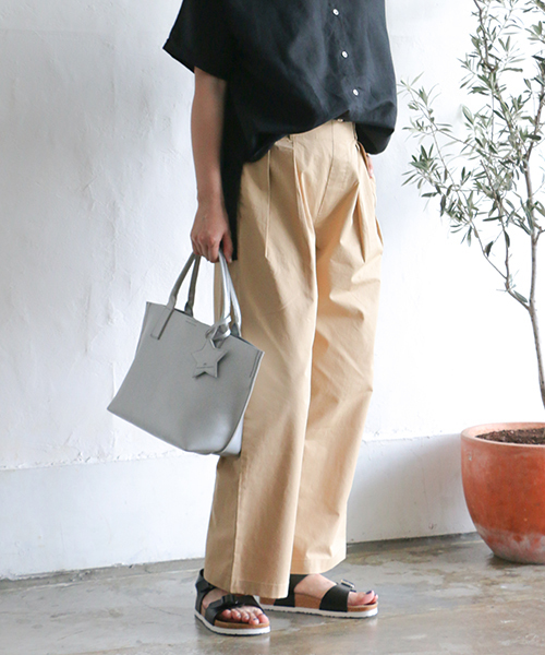 腰回りやもものラインはゆったりとボリュームを出し、裾にかけて少しだけテーパードさせたワイドパンツ。コットンのしっかり素材は透け感もなく安心の履き心地。毎日着たくなるような定番アイテムです。[クリーニング]洗濯機洗い可(非常に弱く) ドライクリーニング可(P) ウェットクリーニング(W)