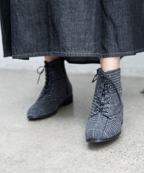 冬のデイリーアイテムにおすすめのレースアップブーツ。 トレンドのひざ下長めスカートとの相性抜群。 スタイリングをメンズライクで今年らしいムードに仕上げてくれます。 定番カラーはもちろん、アクセントにしたいチェック柄もおすすめ。
