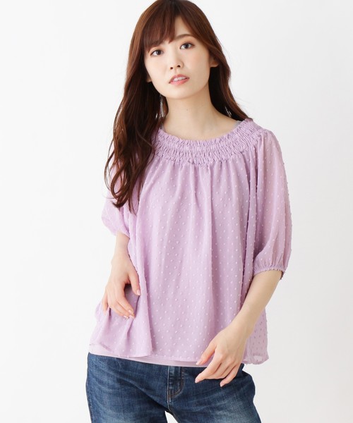 インナーとして使えるラメライン入りタンクトップがセットになったブラウス。ふんわりと女性らしいシフォン素材を使っており、こちら1枚で優しげなスタイリングに。ブルー系のお花プリント3色と立体的なジャカード・ドット柄2色のカラーバリエーションからお選びいただけます。 オフホワイト(103)は透け感があるため、インナーの着用をおすすめします。 1年を通じて着用いただける商品です。 モデル情報:身長166cm B83 W58 H85 着用サイズ:02(M) 店舗へのお問い合わせ商品番号:768-81003 ●製品寸法: 02(M): 03(L): 備考:●製品寸法: 02(M):ブラウス:着丈53 B138 袖丈32 タンクトップ:着丈61 B83 肩幅33 03(L):ブラウス:着丈54 B141 袖丈33 タンクトップ:着丈62 B86 肩幅34