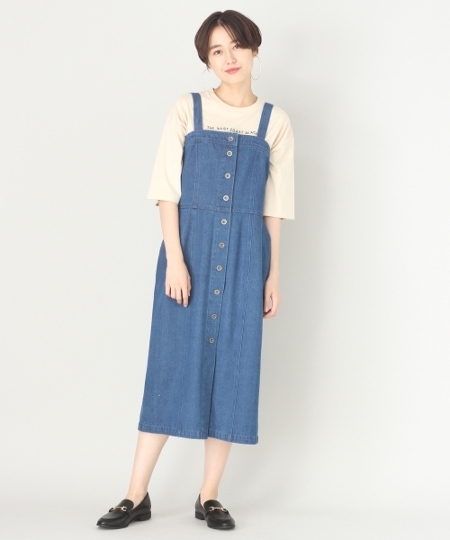 去年から大人気!前ボタンワンピース大人かわいい前ボタンロングワンピースに新作が登場!!ヒザ下丈なので大人めにも着れ、前にデザインされたボタンがアクセントになります♪ストンと落ちるIラインシルエットなので、細見えするのもポイント!インナーに合わせるものを変えるだけで1年中使えるワンピースなので重宝すること間違いなし。■おすすめスタイリング■無地柄なので、シンプルなTシャツ合わせでもお洒落に見せてくれるアイテムになっています。シャツ合わせで大人っぽく、Tシャツと合わせてカジュアルにも着こなせます!■足元のシューズおすすめ例■トップスにシャツやブラウスを合わせるときは大人っぽくローファーやパンプスアイテムで合わせるのがベスト。カジュアルに見せたいときはお持ちのスニーカー・サンダルをプラスすると合わせやすくなりますよ。