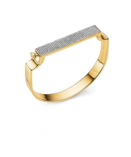 Modern and feminine, this hardware-inspired bracelet is crafted from polished precious metal with strong, clean lines and flowing curves. Glittering pave diamonds encrust the flattened edge for a luxe finish. Style Name:Monica Vinader Signature Petite Diamond Bangle. Style Number: 5238379_1. Available in stores.