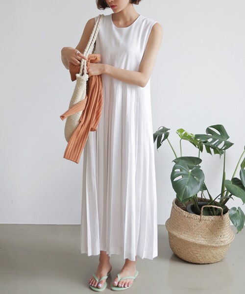 プリーツディテールで大人可愛い♡袖なしでサマーシーズンにぴったりなロングワンピース! カーディガンを肩掛けすれば大人カジュアルなおでかけルックの完成♪ ※WEARに記載してある金額と、DHOLIC通販サイトに記載してある金額にシステム都合上、稀に誤差が生じます。正しい金額はDHOLIC通販サイトに記載された金額です。