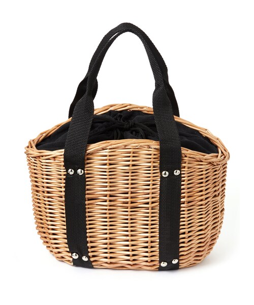 トートバッグのようなテープのデザインとアクセントのスタッズがカジュアルなかごバッグ。 コロンと丸みを帯びたフォルムに愛らしいムードが漂うアイテム。 口は巾着風にきゅっと絞れる仕様となっており、中の荷物が不用意に見えず安心。 ★天然素材・手作りの為、カラー・形・サイズが、写真・サイズ表示と多少異なる場合があります。