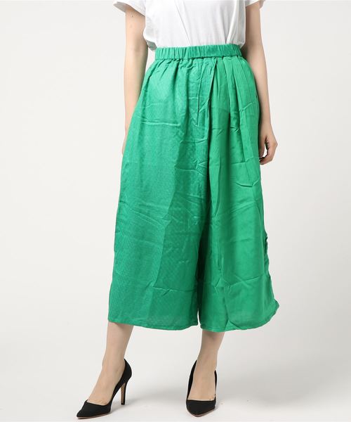 レーヨンドビーとフラットレーヨンの異素材を組み合わせた、無地感覚で穿けるワイドパンツ。 両サイドのスリットは、ボタンを開けてちらりと肌見せするのも◎。ディテールにこだわったシルエットの綺麗なパンツです。 ※こちらの商品は1点1点職人による手作りとなります。その為、形や色合いなど若干異なる場合がございます。あらかじめご了承ください。 Amina Collection Co.,LTD.