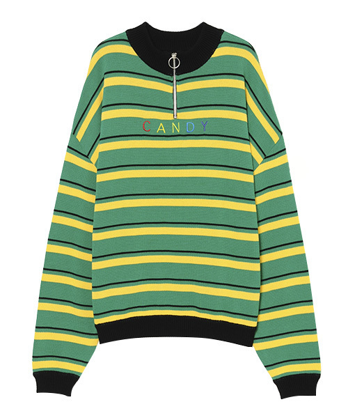 フロントにあしらわれたマルチカラーのロゴ刺繍が90sテイストなニット。 フロントのリングジップがスポーティな雰囲気を演出 ※画像の商品はサンプルです。実際の商品と、仕様・加工・サイズなどが若干異なる場合がございます。