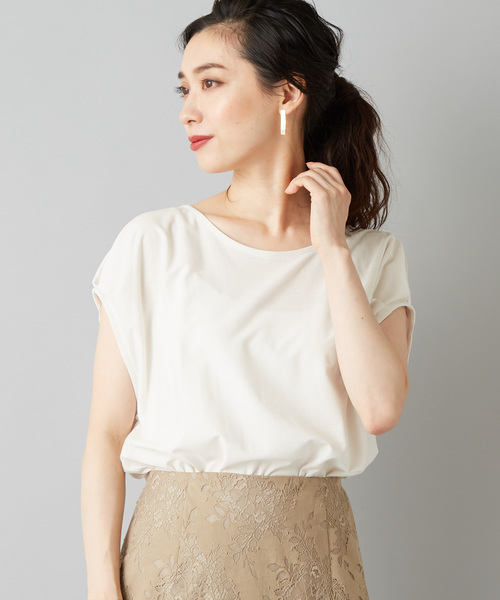 広く開いた袖が華奢な印象を与え、きれいめにもカジュアルにも着られるカットソーです。 ゆったりめのネックとバックスタイルに施したタックが、抜け感のあるシルエットを演出。 細部にもこだわったツイルスリーブがボリュームさをプラスします。 前後で着丈に変化をつけ、様々なコーディネートに対応。 ドライな素材で風通しが良く、涼しく過ごせます。