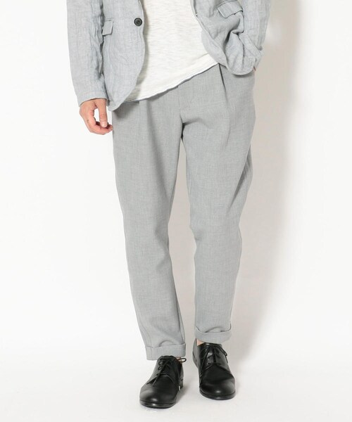 タック入りにより、股上部分にゆとりを持たせたテーパードパンツです。裾をダブルで折り返しトラウザース仕上げにしました。程よいテーパードがシルエットを美しく見せる最大のポイント。トップス次第でカジュアルダウン、ドレスアップが楽しめる万能アイテムです。【ARMURE/アルミュール】2014年Autumn/Winterシーズンからスタート。フランス語で鎧、甲冑の意味。ブランド名の由来はプロダクトデザインの本質である機能と美の融合を兼ね備え、人体に一番近い道具であるという事から。