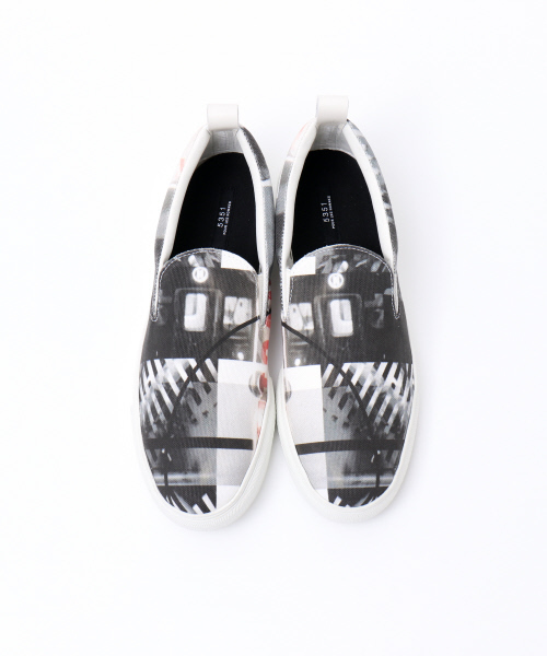 今シーズンのTシャツにも使用され、注目されているグラフィックを、キャンバス地のスリッポンに落とし込んだ一足。ブランドの定番になりつつあるbuddy別注アイテムです。