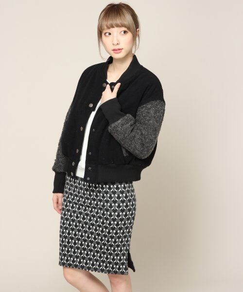 コンパクトなサイジングのスタジャンです。素材が真冬仕様になり、再登場。袖の配色ボアがポイント。タイトスカートやニットキャップでトレンドスタイリングがオススメ☆