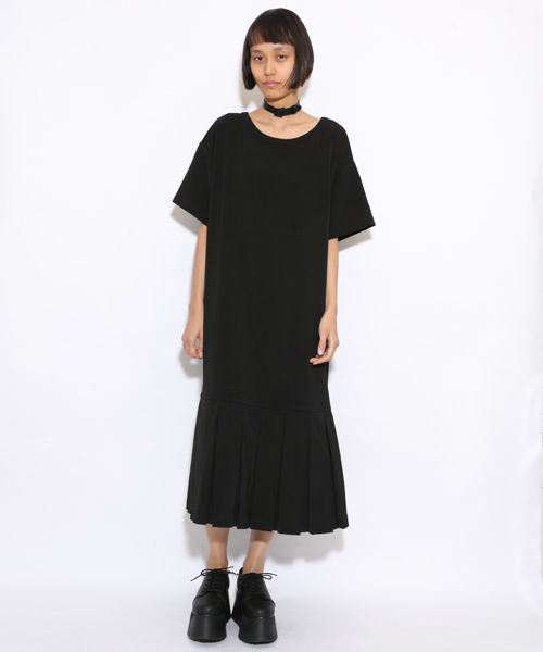 長めの丈のデザインでシックな印象のワンピース。裾がボックスプリーツのデザインで、1枚でこなれた印象で着て頂けます。 ※画像の商品はサンプルです。 実際の商品と仕様、加工、サイズが若干異なる場合がございます。