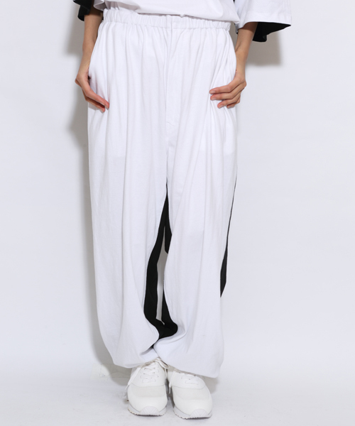 前後が黒✖白の配色パンツは、色々な表情が楽しめる一枚。前後でガラリと印象を変えて頂けます。ルーズなシルエットで、メンズにもオススメのアイテムです。 ※画像の商品はサンプルです。