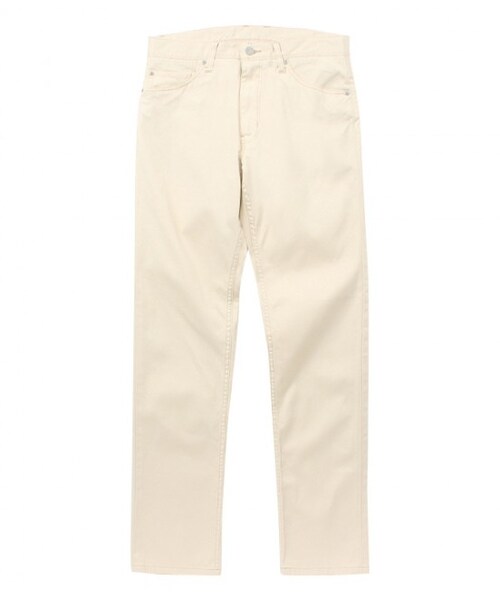ヘビロテボトムスとして活躍してくれる5ポケットパンツです。織り柄に特徴があるブロークンツイルを用いて、ベーシックでありながらひと味違った雰囲気に落とし込みました。すらりとした美脚メイクに定評のあるテーパードシルエットは、ストレッチ入りなのではき心地も快適です。