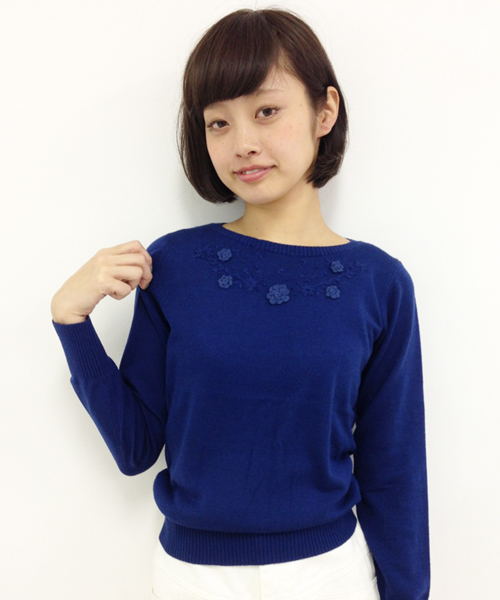Kastane(カスタネ) お花の刺繍がポイントのニット。さりげないデザインなので、どんなボトムにも合わせやすいです。