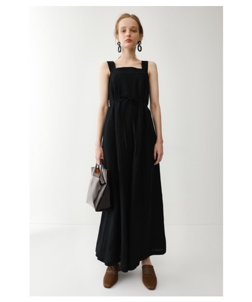 【WIDE TUCK ROMPERS】 ワンピースのように見えて実はパンツ。リネン混なので通気性もよくこの時期にはピッタリのアイテムです。別で紐も付いているのでウエストをキュっと絞って着るのもあり。