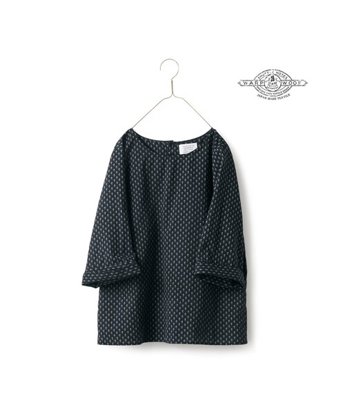 なんにもしない日。 ペルー産ピマコットンを極細の100番手に紡いだ糸でしっかりと打ち込んだ生地にプリントをほどこしました。ほんのりとした光沢は加工ではなく、超長綿ならではの光沢です。デザインはシンプルですが、袖口をぐんと広くとってアクセントにしています。