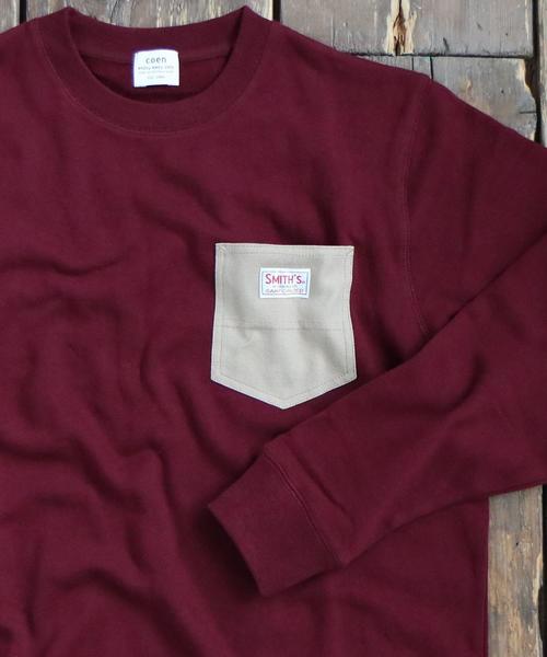 【18FW SMITH別注カプセルコレクション】◆ブラック・その他1(グレー×ブラウン)・その他2(ワイン×ネイビー)はWEBでしか買えないスペシャルなカラー◆◆女性にもオススメ◆◆18FW新作◆コーエンの商品の中でも絶大なる人気を誇るSMITH別注アイテムを18FWは多数のラインナップでカプセルコレクションと称し展開。ファン垂涎の至極のアイテム郡たちです。こちらのスウェットは18SSシーズン絶大なるヒットを記録したポケTのデザインをスウェットに落としこんだ一品。SMITHのペインターパンツのバックポケットをモチーフとした胸ポケットを配しアイコニックなデザインに仕上げました。裏起毛はしていない裏毛素材のため通年使える嬉しい素材。ベーシックシルエットでレイヤードもしやすく、秋冬だけでなく春も使っていただけるアイテムです。女性のオーバーサイズでの着用もオススメ。【SMITH(スミス)】1906年にニューヨークのブルックリンで、ボシュナック一家が創業したワークブランドSMITH AMERICAN【スミスアメリカン】。カバーオールやペインターパンツといったベーシックなワークウエアを製造、アメリカ各地の労働者に供給し、広く親しまれていた。その後、徐々にファッションシーンにシフトし始め、現在は各国に生産を委ねるライセンスアパレルブランドになった。本来のオーセンティックなワークウエアは、今では古着でも殆ど見かけることはなくなったが、当時SMITH【スミス】の生産を請け負っていたアメリカのファクトリーが協力し、日本向けに一部商品を復活させた。現在では有名なショップでも仕入れられたりしており、人気を博している。※WEB限定カラーは店頭への取り寄せは行っておりません。※実店舗と発売時期が異なることがございます。あらかじめご了承ください。【商品に関するご注意】※撮影商品はサンプルとなり、実際の仕様と若干異なる場合がございます。あらかじめご了承下さい。【画像に関するご注意】※商品の色味につきまして、お客様のお使いのPCのモニター環境、設定により実際のカラーと画像の色味が違って見える場合が御座います。予めご了承の上、ご注文下さい。 ※屋外や直射日光のある撮影画像は光の加減で、実際の商品より明るく見える場合が御座います。店舗にお問い合わせの際は、全国のコーエン各店まで下記の品番をお申し付け下さい。品名:EC SMITHウラケPOKET C/N 品番:7520-604-8107H179 B82 W72 H91 着用サイズ L