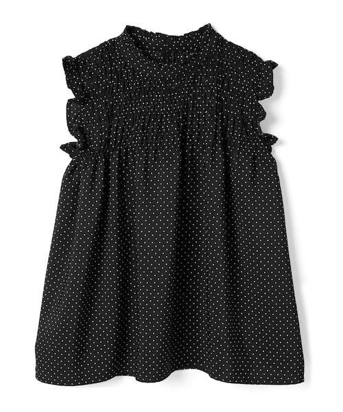 小粒の水玉柄が爽やかCUTEなトップス。 プチハイネックデザインがレトロガーリースタイルをアシスト。 袖口はたっぷりフリルで仕上げて肩出しも愛らしく。 バストにシャーリングを入れてメリハリのあるフォルムに仕上げたのも魅力的。 1枚でフレアシルエットを楽しむのはもちろん、重ね着のインナーとしても大活躍できるアイテム。 ★裁断の関係で、柄の出方が写真と多少異なる場合があります。