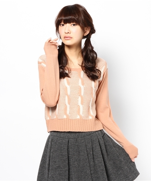mystic(ミスティック) バイカラーのケーブル編みデザインが、冬らしい暖かみを出してくれるニットプルオーバー。シルエット自体はラウンドネックのベーシックフォルムなので、着こなしやすい一枚になっています。 インナーにハイネックやブラウスを重ねて頂くのもお勧めです。