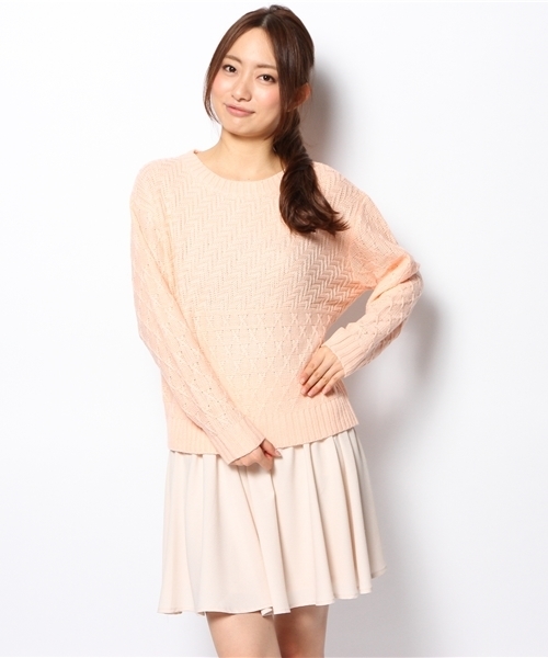 Discoat(ディスコート) 雪柄とバスケット編みのコンビがポイント♪ ショート丈でトレンドのタイトスカートとのコーデも◎ Discoatおすすめ“winter pastel”もしっかりおさえたアイテムです! model:H161 B80 W58 H89 着用サイズ:フリ- アイボリー・ベビーピンク model:H169 B80 W60 H85 着用サイズ:フリ-