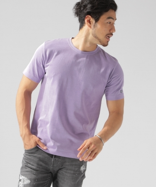 しっかりした素材感の半袖T。 レギュラーフィットタイプなので着る人を選ばず、着回しもしやすい1枚です。 製品染めによる味のある風合いも魅力。 ※製品加工を施しておりますので、一点一点風合いが異なる場合がございます。予めご了承下さい。