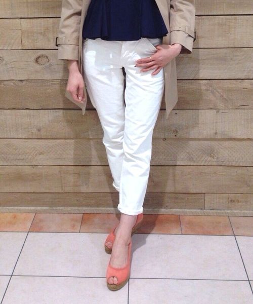 Another Edition×LEEペインタースキニーデニム☆ 大人気ブランド「LEE」より、Another Edition別注デニムパンツのご紹介です!! ボーイッシュなイメージのペインターデニムを、すっきりと履いていただける細身のシルエットに仕上げたAnother Editionならではのデザインは、ベーシックになりがちなデニムスタイルを新鮮な印象に見せてくれます♪ カジュアルな中にも女の子らしい雰囲気が楽しめるデニムは、ロールアップしてパンプスを合わせた大人っぽいコーディネートや、ソックスをプラスしたトレンド感たっぷりのスタイリングもオススメ。 幅広い着こなしが楽しめるコバルトブルーと、春らしいオフホワイトをご用意しました。 さらにAnother Editionのロゴ入りギンガムチェック柄バンダナをお付けしたスペシャル仕様です! ●model:165㎝ 着用サイズ:M ●オフホワイト着用スタッフ:162㎝ 着用サイズ:S ■こちらの商品は動画でご紹介しております。(※PC、スマートフォンのみの再生となります) ※音楽も再生されますので、動画をご覧いただく際には再生機器の音量をご確認下さい。 ※スタッフ着用画像は色味が若干異なります。カラーは詳細画像をご確認ください。 ※着用、お取り扱いの際は商品についておりますアテンションタグ、洗濯ネームを必ずご確認ください。 店舗にお問い合わせの際は、全国のAnother Edition店舗まで 下記の品名/品番をお申し付け下さい。 品名:AE×Lee PAINTER SKNY 品番:56145991627 ※画像の商品はサンプルです。 実際の商品と仕様、加工、サイズ、素材が若干異なる場合がございます。