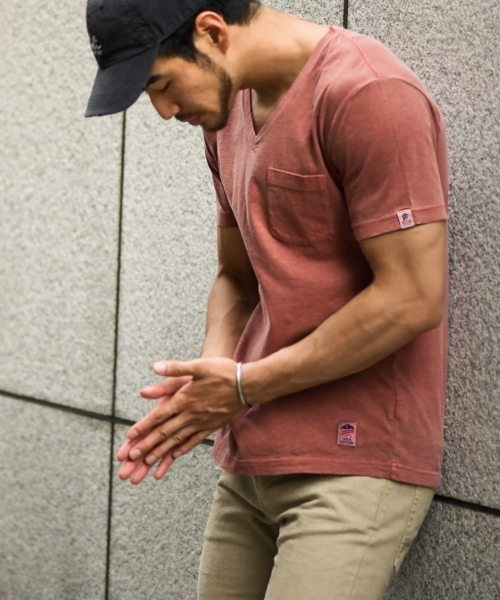USAコットンを使用し、柔らかい風合いが特徴のVネックTシャツ。製品染めを施したかすれた風合いが涼しげでこなれ感の漂う一枚。夏のベーシックアイテムとしてワードローブに加えたい一枚。※製品加工を施しているため、1点1点風合いが異なります。予めご了承くださいませ。※屋外での撮影画像は光の加減で、実際の商品より明るく見える場合がございます。商品の色味はスタジオ撮影の画像を参考にして下さい。