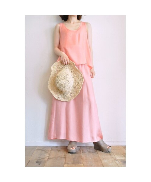 ブランド*hippiness カラー*1 ,2 ライムグリーン 3 サーモンピンク 4 ブラック サイズ*FREE モデル身長*1・156cm 2,3・165cm 定番キュプラシリーズから新色登場です。 無地全5色。 シルクのような肌触りのキュプラ素材。 肌馴染みがよく、色落ちしにくいため、 夏場のアイテムとして取扱いしやすいアイテム。 トップ部分と重ね着風のデザインになっています。 ウエスト部分はゴム仕様。