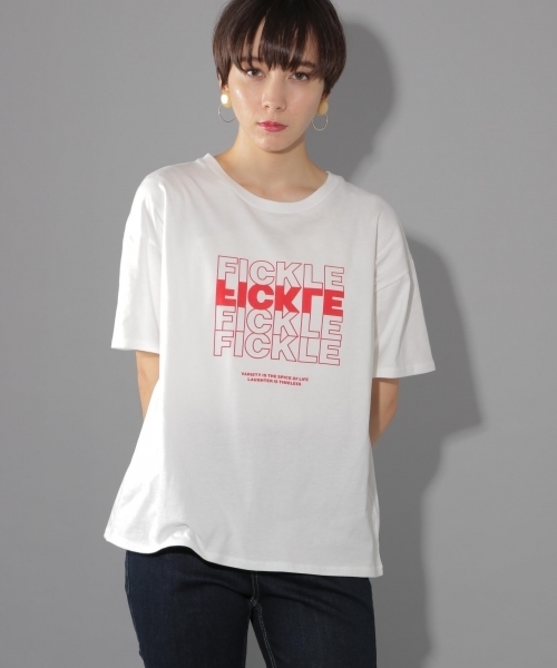 赤ロゴがポイントのカジュアルなTシャツ。 ゆったりめなシルエットで、カジュアルに使えます。 シンプルなTシャツですが、フロントのロゴがアクセントに なり、おしゃれ感もプラス♪ デニムでさらっと合わせたり、サロペにINしても◎