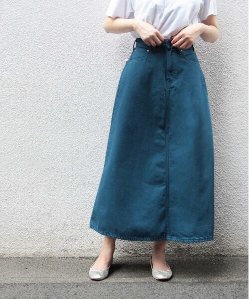 新鮮なカラーリングが特徴のデニムスカートを別注。マキシ丈ですがライトオンスで軽く、生地の程よい張り感が着用時にきれいな立体感を成し、腰周りがすっきりとフィットする様にデザインされています。履き込むとヴィンテージのようなカッコよい色変化を楽しめるデニムタイプと、表情豊かな染めの風合いが楽しめるカラータイプの2タイプの展開です。1サイズ=Sサイズ2サイズ=Mサイズ【BIG JOHN for ADAM ET ROPE'】 日本が誇る最高のデニム生産技術を持つBIG JOHNとアダ