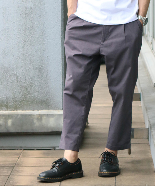 どんなスタイリングでもこなせる万能な1本。 ■素材 コットン、ポリエステル混紡素材で、しなやかで程よくハリのある素材感。 ポリウレタンも入っており、ストレッチ性抜群で、すっきりとしたシルエットながら快適なはき心地を実現。 ■デザイン・シルエット タックを施し腰周りには程よくゆとりを持たせ、裾にかけて緩やかに細くなるテーパードシルエットを採用。 さらにサイドから後ろ身頃にかけてゴム仕様にしておりウエストにも負担がかかりにくくなっております。 どんな体型の方でも綺麗にはいて頂けるように計算された1着です。 アンクル丈なので、ソックスなどで遊びを入れたスタイリングも楽しんで頂けるようなボトムです。 ■コーディネート 柄物のオープンカラーシャツと合わせたきれいめスタイルでトレンド感を演出。 Tシャツをタックインした抜け感のあるコーディネートもイチオシ。 【Confirm / コンファーム】 シンプルな中にもその時々のトレンド要素を盛り込んだ、シャープで少し大人なカジュアルスタイルを提案します。 LINE@→@conill Instagram→confirm_official twitter→cfm__official