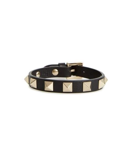Valentino's signature raised pyramids glint with a bit of edge across a slender bracelet cut from supple leather. Style Name:Valentino Garavani Rockstud Small Leather Bracelet. Style Number: 5623630. Available in stores.