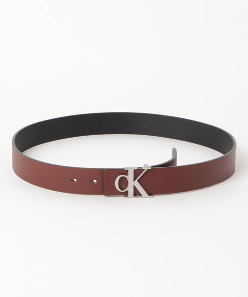 アイコニックなcKバックルのレザーベルト。ヤングでカジュアルなイメージ。 ブラック・グレー・ブラウンの3色展開。 ブランドアイデンティティ溢れるアイテム。