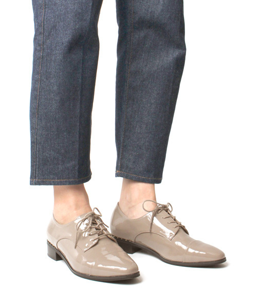 ◆2018AW新商品◆ 踵のピースについているスタッズがポイントのオックスフォードシューズ。 つま先部分にはクッションを使用し、足当たりも良い一足です。 ‐‐‐‐‐‐‐‐‐‐‐‐‐‐‐‐‐‐‐‐‐‐‐‐‐‐‐‐‐‐‐‐ ★スタッフコメント (足の形には個人差がございますのであくまでご参考までにお願い致します。) 【スタッフA】 普段23.5を着用。足幅3E(広め) 生地が柔らかいので、Mサイズを履きます。 【スタッフB】 普段23.5を着用。足幅E(ふつう) 私はMサイズをぴったり履きます。 私は23.5cmをぴったり履きます。 【スタッフC】 普段24を着用。足幅D(狭め) 私はLサイズをぴったり履きます。 私は24cmをぴったり履きます。 ‐‐‐‐‐‐‐‐‐‐‐‐‐‐‐‐‐‐‐‐‐‐‐‐‐‐‐‐‐‐‐‐
