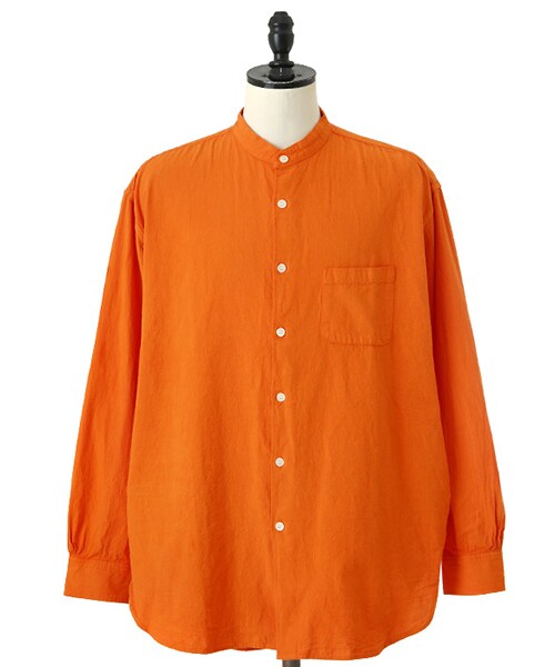 【デザイン】 後身頃を長めに仕上げたAラインシルエットが特徴的な 生機のバンドカラーシャンブレーシャツ。脇接ぎ部分にポケットが施されているので、シャツブルゾン感覚での着用も可能。ゆったりと着用できるシルエットです。 【素材感】 サラリとしたコットンシャンブレー地はシーズンレスに着用可能な万能シャツ。耐久性にも優れているのでデリケートに考えなくても良い点も魅力です。ウォッシュ加工を施すことで製品そのものに立体的な表情が出ています。生機仕上げの為、お洗濯後におよそワンサイズほどの縦縮みが生じます。 【シルエット、サイズ感】 肩周り、アームホールはすっきりとしていますが、着丈が長めに設定され、裾が広がるAラインです。オーバーサイズの気分にぴったりな一枚。