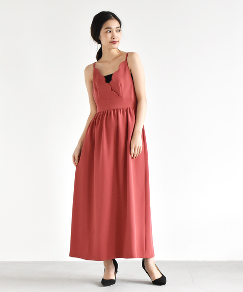 スカラップ×ギャザースカートが女性らしいジャンバースカート。 バックストラップはクロスデザインになっており、ウエストの切り替えは細見え効果をもたらしてくれます。 しっかりとした二重織りの生地を使用しているので、シワになりにくく扱いもラクチンです。 結婚式などのフォーマルシーンはもちろん、インナーにTシャツやニットを合わせて普段使いもでき、着まわせる1枚です。 ※ピンク系その他→ブリック系の色味です(下げ札表記カラー:ブリック) ・サイズ詳細 ウエスト/36サイズ 74.5cm、38サイズ 77.5cm ◆コーディネートアイテム ドットチュール インナーブラウス(品番:010274)