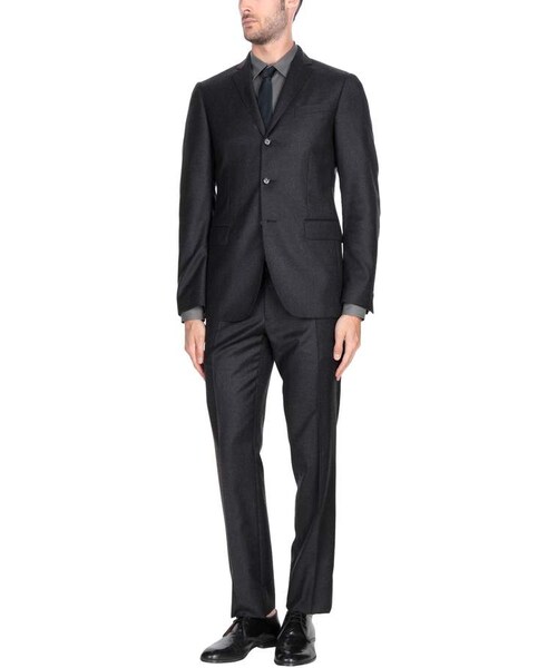 BURBERRY Suits. flannel, no appliqués, basic solid color, multipockets, pocket with flap, single chest pocket, three internal pockets, 3 buttons, lapel collar, single-breasted, long sleeves, fully lined, dual back vents, hook-and-bar, zip, mid rise, contains non-textile parts of animal origin, single-breasted jacket. 100% Virgin Wool