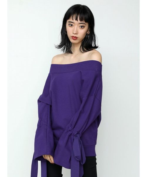 人気のデコルテデザインのトレーナーです。 袖口を絞れるようになっているため、たっぷりとした袖コンシャスなデザインになっています。 カジュアルな印象のトレーナーですが女性らしく着用が可能になっています。 【スタイリング】 袖にボリュームのあるシルエットであるため、ミニ丈のボトムでコンパクトにまとめるのが◎ スキニーデニムなどタイトなボトムとも相性が良いですよ★
