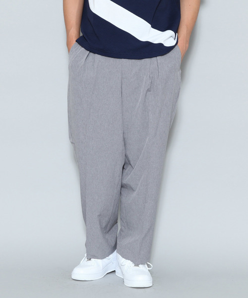 エアードライシリーズのワイドパンツ秋にも使えるカラーでありながら涼しさは夏でも快適なオススメアイテムです。こちらはベルトループ無しのデザインでウエスト周りもスッキリ見えるように仕上げています。落ち感などキレイに出るシルエットへとこだわった一品。