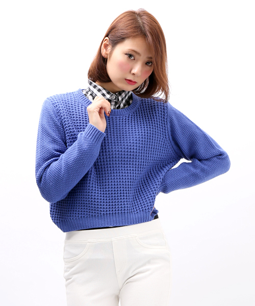 ロウゲージで編み上げたセーター。ショート丈のデザインは、着て頂くと布の緩みが綺麗に出るシルエット。深めのドルマンスリーブ仕様で、胸元から裾にかけてのドレープがとてもフェミニンな印象に。定番のホワイトや杢グレーに加えて、鮮やかなブルーやグリーンその他もご用意しました。ザックリとした落ち感の綺麗なシルエットは、力の抜けた雰囲気で手軽に着まわして頂けます。 店舗にてお問い合わせの際は、下記の品名・品番をお申し付け下さい。品名:チャンキーショートセーター 品番:BL14SP-2403-001model:H162 着用サイズ:FREEmodel:H163 B80 W59 H88 着用サイズ:FREEWEGOの特集ページはコチラ