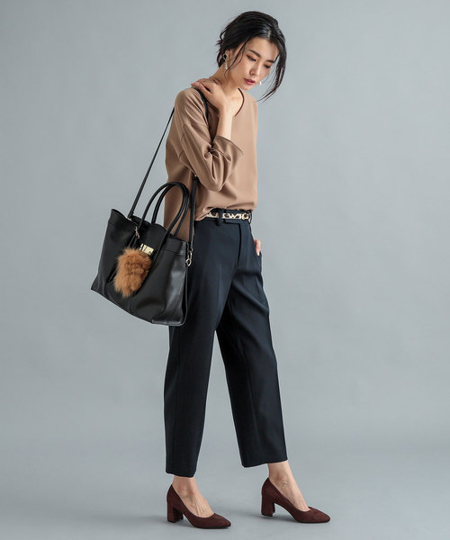 パリッとした張り感に特徴のあるポリエステル・ウールのダブルクロス素材のシガレットパンツです。 とても軽くラインがとてもきれいな仕上がりになっておりスッキリとした印象に♪ タックなしのデザインにすることでおなか周りをすっきり痩せ見せ効果も◎ ウエストベルトの裏に「マーベルト(滑り止め)」風に綾織・平織交互に織ることで、 しっかりとフィットし、着心地も良い仕上がりになっています。 多くの方に履いて頂きたいので、今回は4サイズ展開にしております。 是非、履き心地を味わってくださいませ。