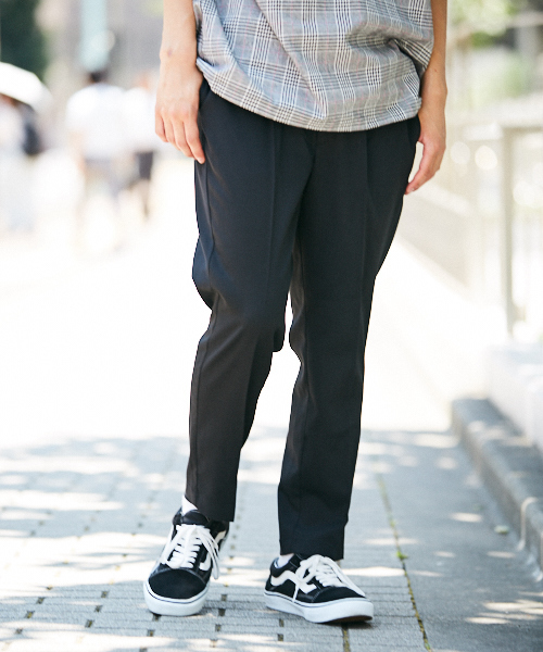 シルエットにこだわったテーパードパンツ。 kutir自慢のコスパ神アイテムです。 トップスがビッグシルエットになっている中で、 着回し力抜群のシルエットが魅力。 【生地の特徴】 スーツ地のような高級感ある生地感で、 多少の伸縮性もあるので着心地抜群です。 【サイズ感】 裾に向かってテーパードしているシルエットで きれい目なシルエットになっています。 腰回りは若干のゆとりを持たせていますが、 ウェストの内側にドロストコードを入れているので、 ストレスなく着用いただけます。 【デザインポイント】 ムジにはセンタープレスを入れ、よりスラックスのような高級感を出しています。 また、チェックに関しては今年のマスト! トレンドの大き目のチェック柄がより今年らしい1枚です。 【スタイリング】 ビッグシルエットのカジュアルトップスと合わせた、 カジュアル×きれい目の中和のスタイリングがオススメ。 また、腰回りはゆったりしているので、 タックインでの着用も今年らしくてオススメです。 【お買い物をよりお楽しみいただくために】 ▼公式instagram>>《 @kutir_men 》 おすすめコーデや、プレゼント企画など、毎日更新中! フォローしていただくと、いいことありますよ♪ ▼商品のお気に入り登録(ハートマークをクリック) 完売カラーの再入荷通知や、ラスト1点の通知、セールの通知も受けることができます。 ▼ブランドのお気に入り登録 新商品や再入荷など、いち早くブランドのお得な情報を受け取ることができます。