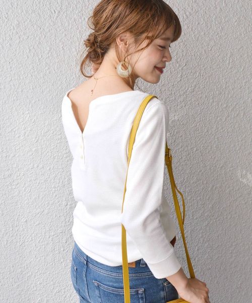 着まわし力抜群のカットソー。2WAYで着られて、首周りはすっきりとした印象に。 ※末永く愛用頂く為に、アテンションタグ・洗濯ネームを必ずご確認の上、着用又はお取り扱い下さい。 ※画像の商品はサンプルです。 実際の商品と仕様、加工、サイズが若干異なる場合がございます。 ※屋外での撮影画像は、光の当たり具合で色味が異なって見える場合があります。商品の色味は、スタジオでの詳細画像をご参照ください。