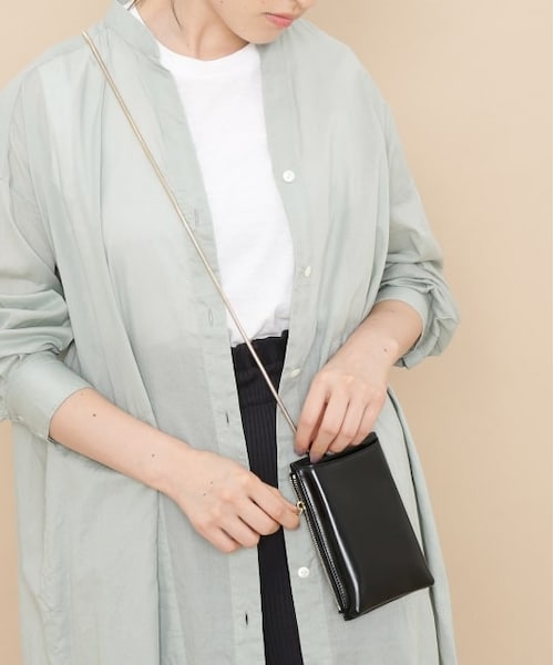 スマートフォンがすっきりと収まるポケットとジップ付きポーチが合体した2重構造のチェーンポシェット。斜め掛けできるので両手が空けられ日常使いに便利なアイテムです。ジップ付きのポーチ部分は電子マネーやICカード、小銭を入れればお財布代わりにも使え、ちょっとしたお出かけもスマートに対応出来ます。コーディネートを選ばないブラックに加え、着こなしのアクセントにもなるブラウンとパイソン柄の3色展開。今までにない”丁度いい”サイズ感が魅力のNEWバッグ。是非手に入れて◎