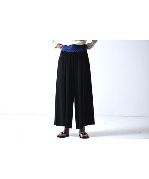 ウエストマークのハイウエストが印象的なキュロットパンツ。 前後の所々にギャザーが施されており、わたり幅(太もも周り)がゆったりとしたシルエットになっています。 後ろのチャックで開閉可能。 こちらのアイテムはONE SIZE。 細身の男性も着用可能です。