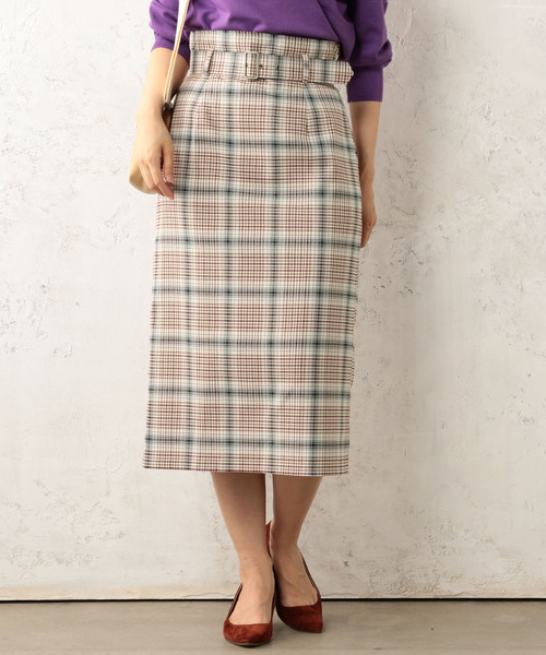 トレンドコーデに欠かせないチェックのタイトスカート すっきりとしたIラインで女性らしいシルエットを演出します。 シンプルなリブニットや上品なブラウス、今年はロゴTとカジュアルミックスな着こなしもおすすめ。 ハイウエストで着て頂けるので、きゅっと締めたリボンはスタイルアップも期待できそう◎ こなれ感溢れるチェック柄スカートは、ぜひワードローブに取り入れたい一着です。