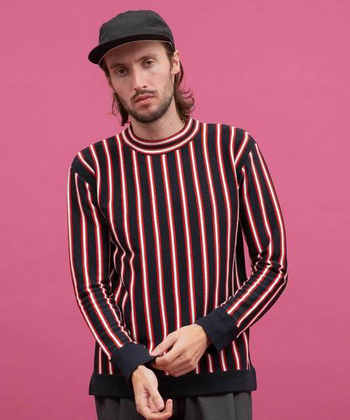 ドライタッチで清涼感ある糸でしっかり編み立てたニット。3色の糸で今年らしいトラディショナルなストライプ柄に。リラックスした程良いシルエットに、ハイネックデザイン。 ロンTの様にラフに着て頂ける雰囲気。 洗濯(手洗い)出来るのも嬉しいポイント。