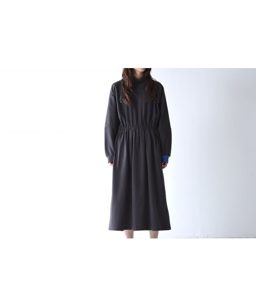 シンプルで立体的なシルエットを持つワンピース。 ドレスシューズからサンダルまで万能に相性の良い優れた一着。 メインは上下同素材を使用しております。女性らしく且つsneeuwならではのウエストマークも健全。 正面から見るとワンピース、背面から見るとトップスとスカートを合わせているかのように見えます。 また、左袖口のみに施されたバイカラーはさりげないディテールポイント。 両サイドにポケットが施されているので利便性も◎ 素材には、起毛加工をした天竺を採用。 秋冬の定番アイテムとしてオススメです。 こちらのアイテムはFREE SIZE。 オーバーサイズなデザインなのでほとんどの女性に着ていただけます。